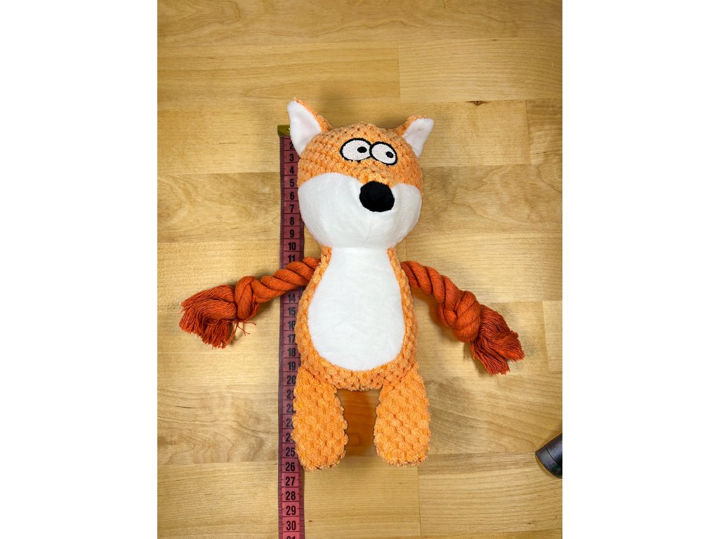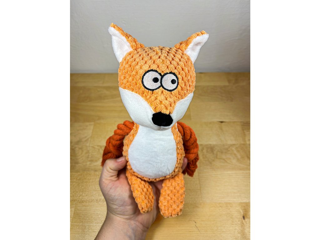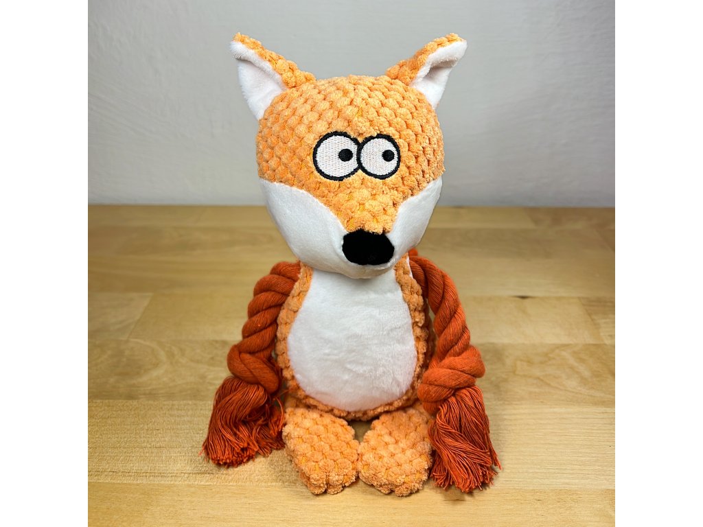 Pískací Liška je roztomilá plyšová hračka, která potěší každého psa – měkké tělíčko na mazlení, pevné lano na tahání a pískátko pro extra radost.
